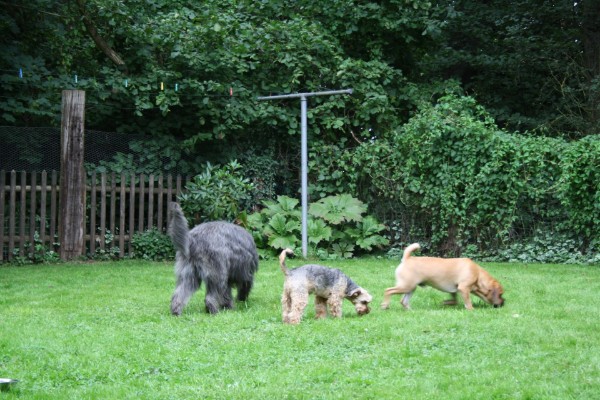 Ab wann ist ein Garten ein großer Garten? Wir möchten ungern eine bestimmte Mindestgröße vorgeben. In einem großen Garten könnte auch ein großer Hund ein Stück rennen, es gibt viele Schnüffelecken und vielleicht umgibt er sogar das ganze Haus? Nett gestaltete Hundeplätze sind für uns große Gärten oder Hundeauslaufgrundstücke. Ein großer Garten ist auch dann für den Hund interessant, wenn er nicht durch "enriched environment" (noch) abwechslungsreicher gestaltet wurde.